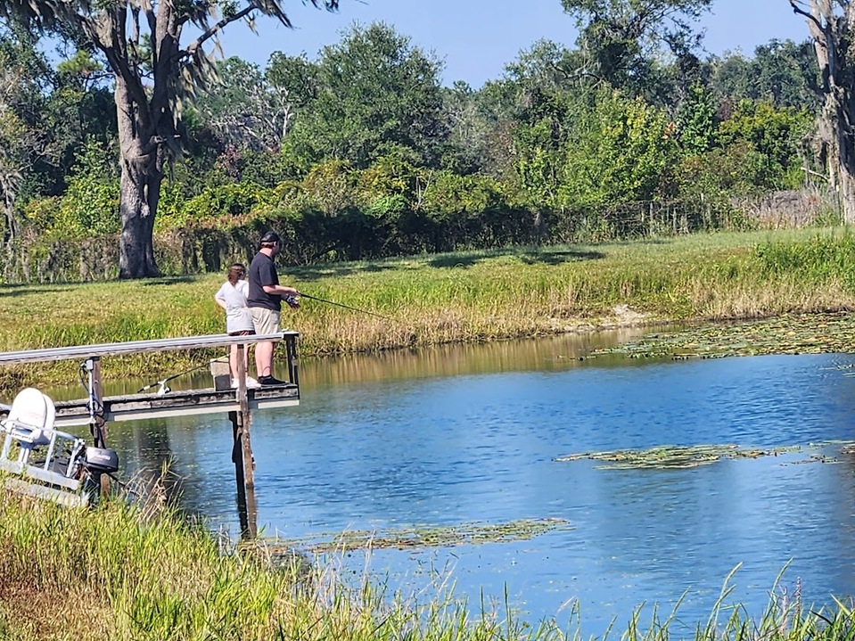 Relax and enjoy our catch and release fishing pond.  You can walk around and find your favorite spot or stand out on the dock.  We have had several folks catch some whoppers. So come try your luck. Or just sit under the live oaks and soak in the beauty.