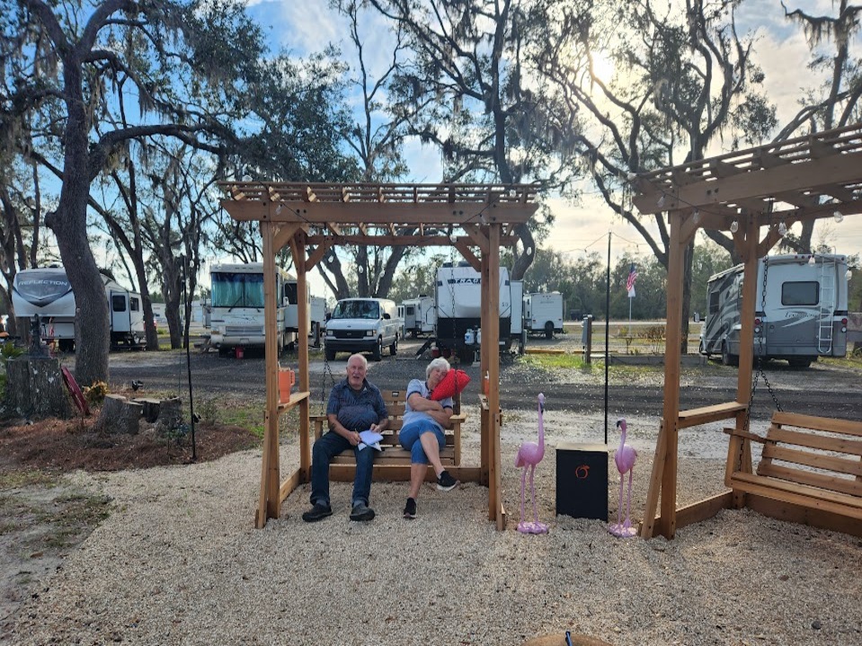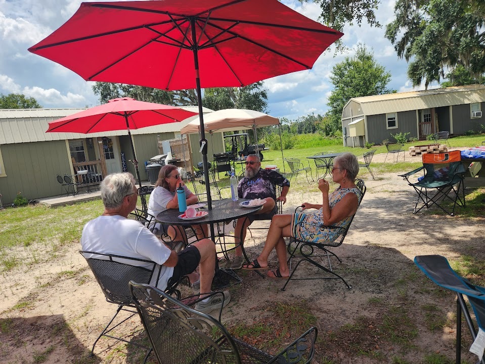 The best part of the RV Life is the people you meet along the way.  We love to gather for food, fun & fellowship. We may enjoy a campfire around our community firepit, a pitch in meal or just get together to play games.  Our motto is, come as friends, leave as family.